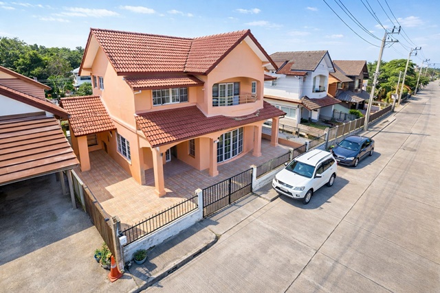 บ้านเดี่ยวหลังใหญ่ ในโครงการประภาวรรณโฮม 2 บ้านหันหน้าเข้ากำแพงโครงการ ไม่ชนบ้านหลังอื่น ให้ความเป็นส่วนตัวสูง